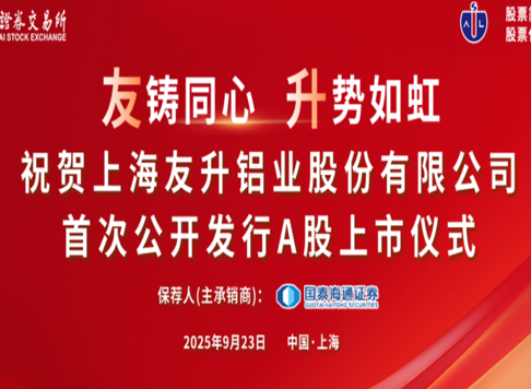 “友铸同心,升势如虹”,2025年9月23日,由联新资本投资的企业上海友升铝业股份有限公司(以下简称“友升股份”)在上海证券交易所主板上市(603418.SH)。2025-09-23