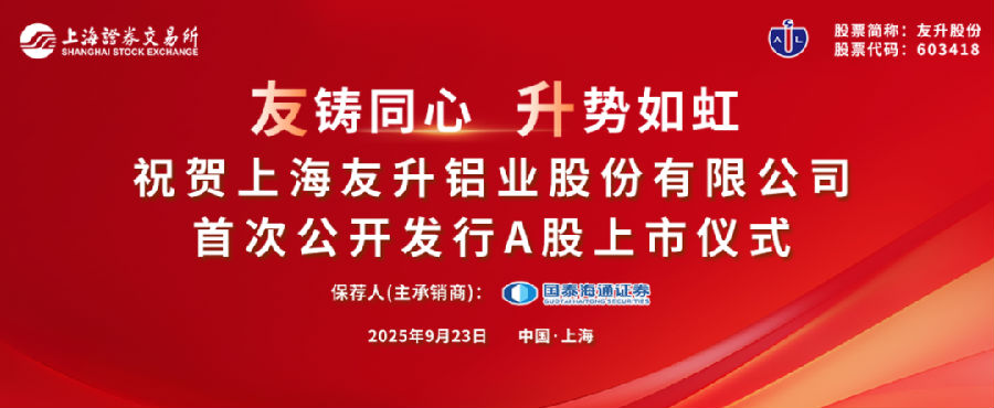 “友铸同心,升势如虹”,2025年9月23日,由联新资本投资的企业上海友升铝业股份有限公司(以下简称“友升股份”)在上海证券交易所主板上市(603418.SH)。发行价格46.36元/股,开盘价90.02元/股,股价上涨94.18%,开盘市值173.8亿元。